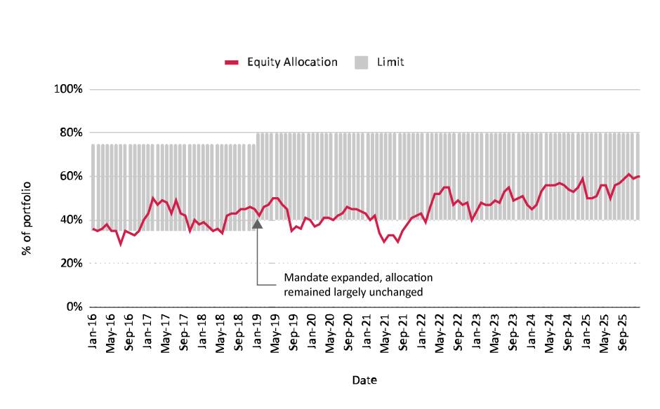 By running this analysis on a rolling basis, an oversight body can watch how the implied allocation shifts over time. A portfolio mandated as 60% equity and 40% bonds might, eighteen months later, exhibit a return pattern consistent with 75% equity and 25% bonds — revealing drift that a simple performance report would never surface. The technique is particularly valuable in governance contexts because it requires nothing more than a return stream; even where a manager provides limited transparency into underlying holdings, RBSA can detect whether the portfolio is behaving in line with its mandate.